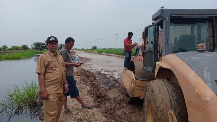 KANALSUMATERA.com - Rokan Hulu - Kepala Desa Kasang Padang Kabupaten Rokan Hulu, Repianto, langsung turun ke lokasi rusaknya jalan menuju Sontang dari desanya pada Senen (10/09/2020).